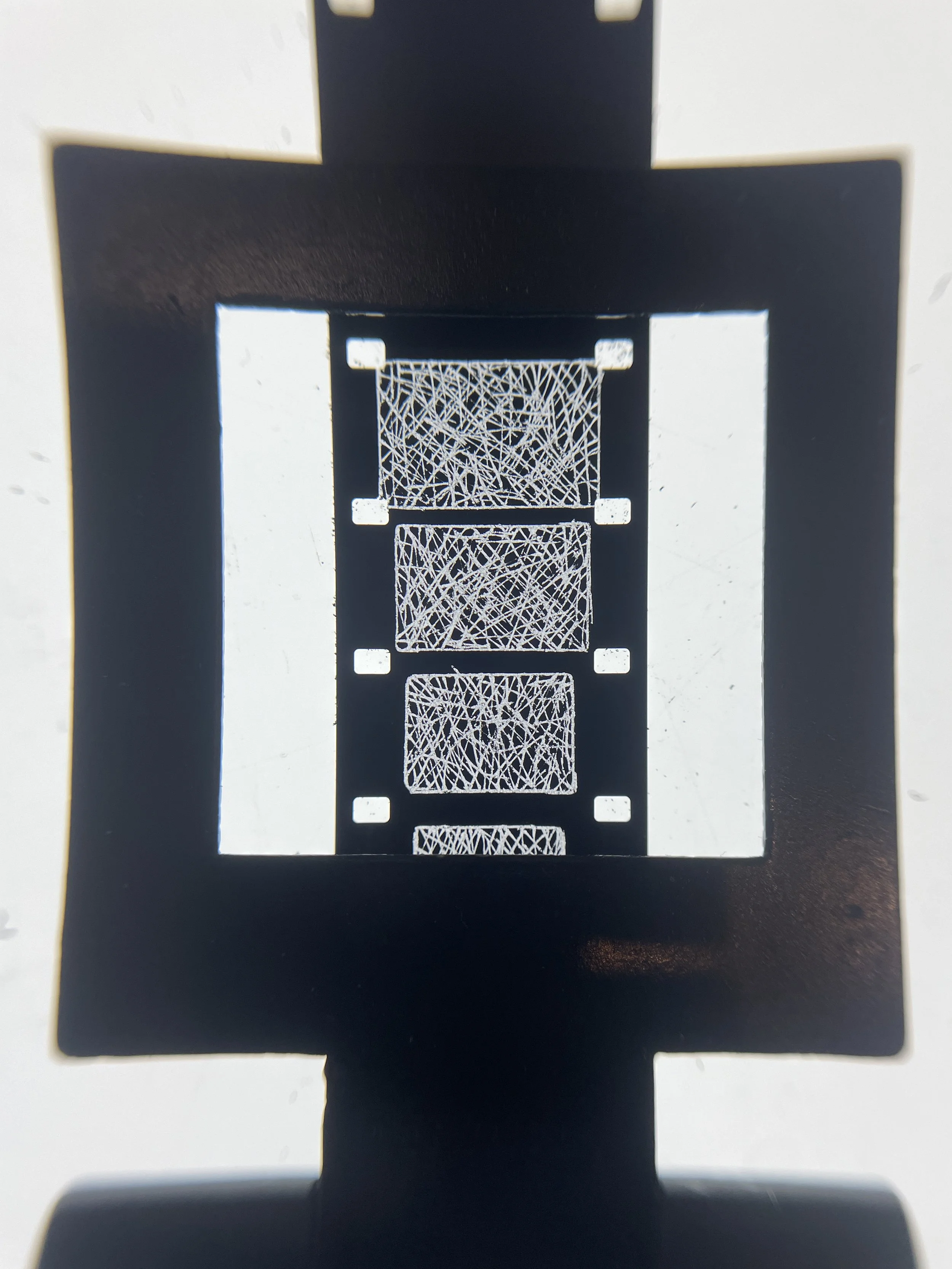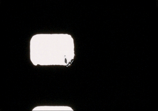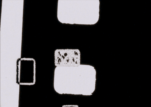 Double Perf is a 16mm scratch film exploring the shape and structure of film itself.